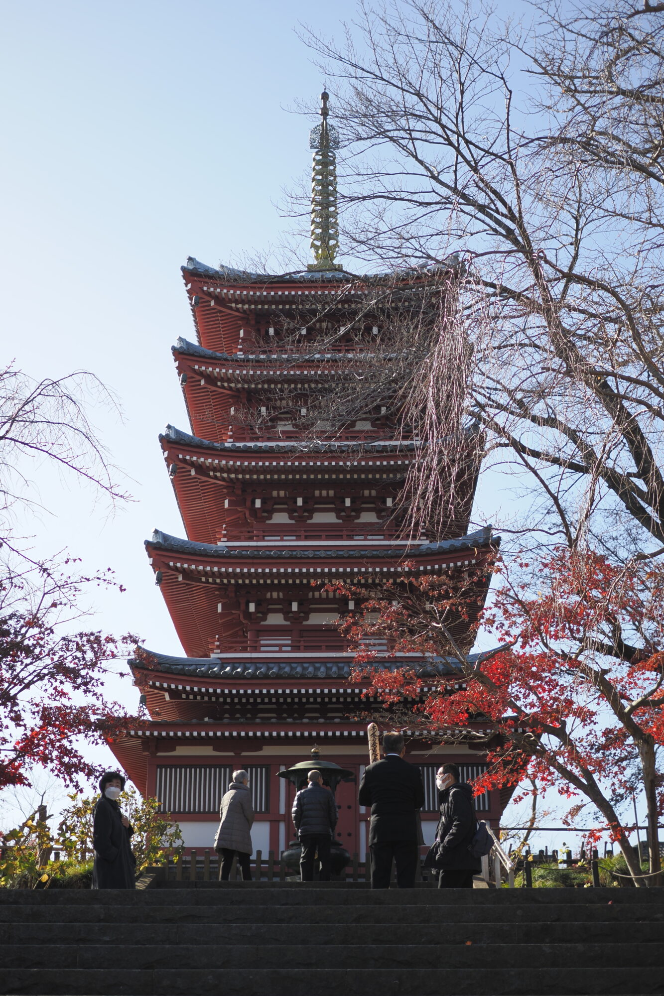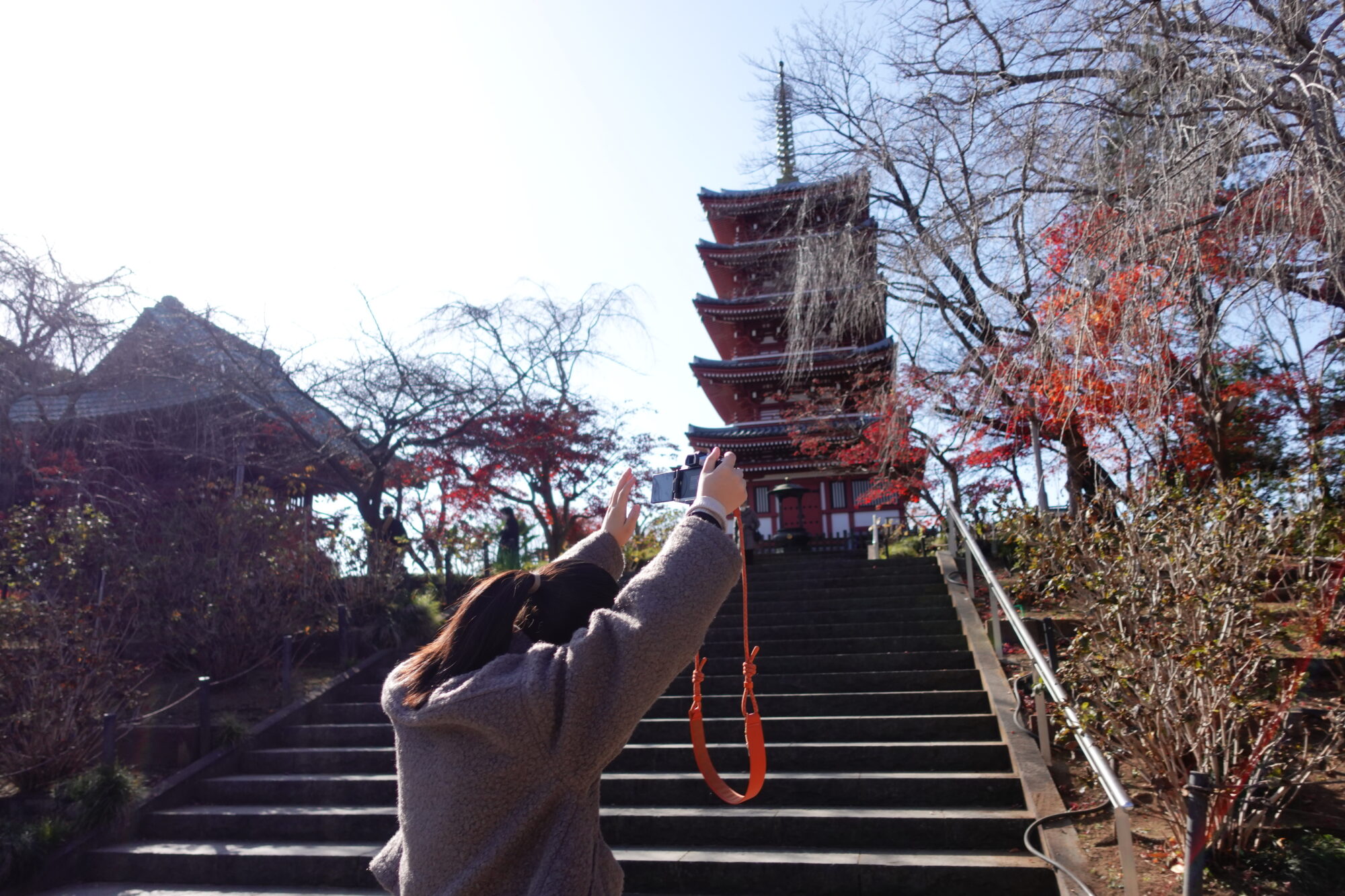 紅葉の隙間から五重塔を狙う長女