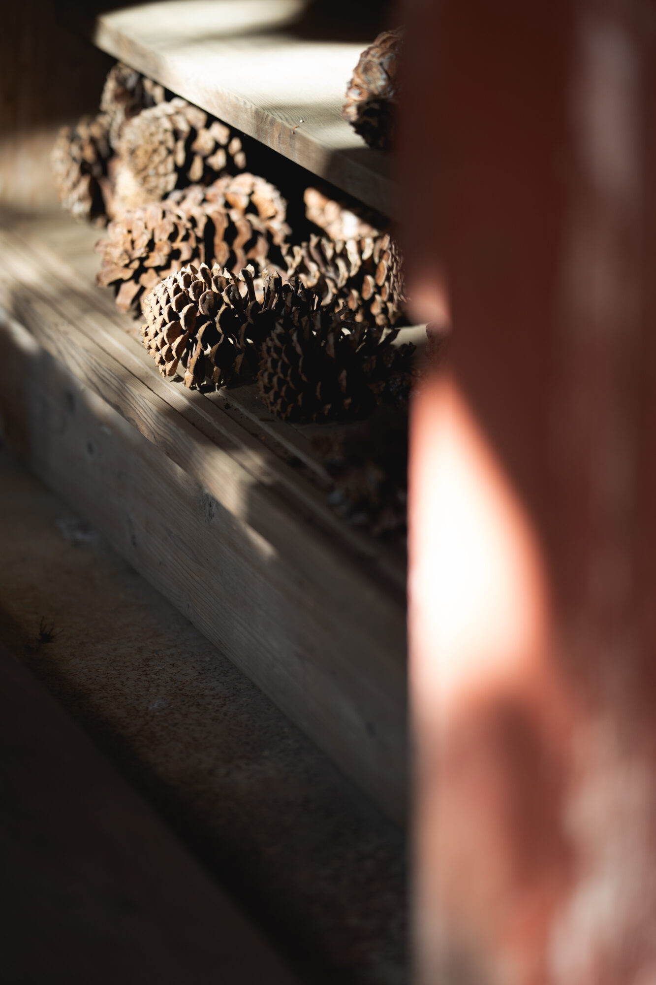 拳よりも大きな松ぼっくりが集めてあった
