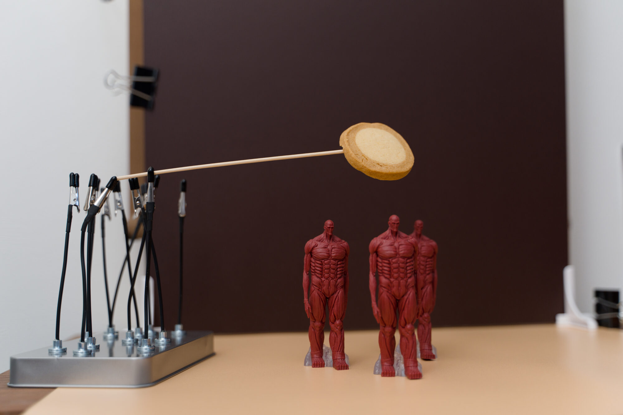 この時はメッシュワイヤーとテグスを使って、マカロンを宙吊りにして撮影。